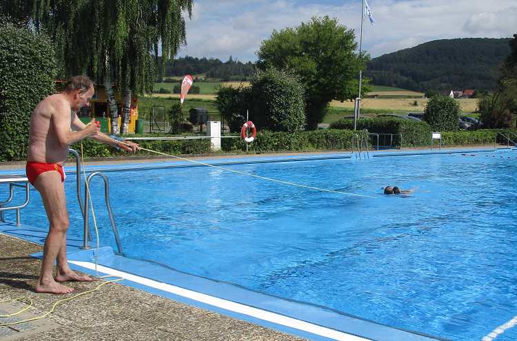 Bei gutem Sommerwetter konnte am Sonntag, den 14.Juli 2024 die alljährliche Rettungsschwimmübung der DLRG-Ortsgruppe Haddessen im Süntelbad Haddessen durchgeführt werden. Auch wenn sich das Teilnehmerfeld in Grenzen hielt, so konnten doch einige Badbesucher und DLRG-Rettungsschwimmer mit verschiedenen Rettungsmitteln üben, u.a. mit dem Rettungsgurt, dem Gurtretter und dem Rettungsball.