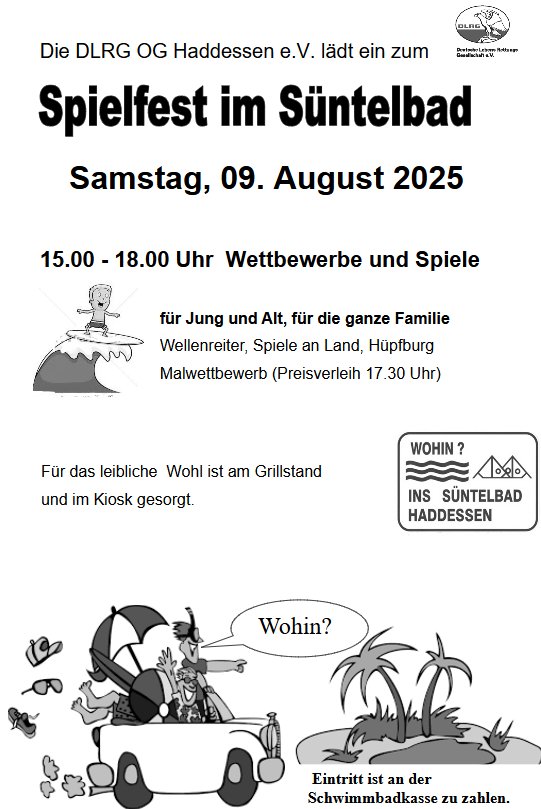 Vielleicht lockt das DLRG-Spielfest im nächsten Jahr wieder viele Freunde der DLRG-Ortsgruppe Haddessen und des Süntelbades Haddessen zum 6. Spielfest/Sommerfest. Wir würden uns sehr freuen.