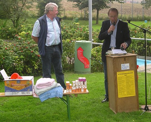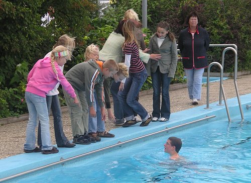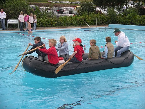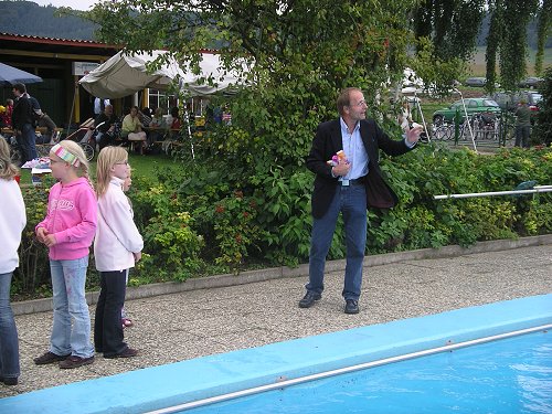 Bevor Herm Henkel die Urkunden für Schwimmprüfungen verleihen konnte, sorgte die 'Salty