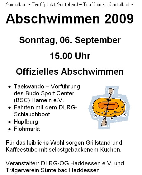Vielen Dank für den Besuch im Süntelbad in der Saison 2009.