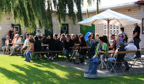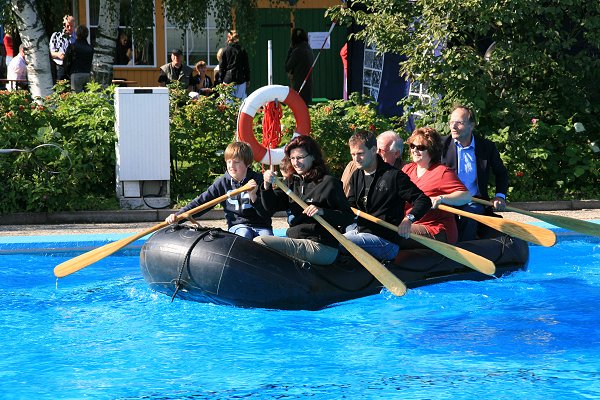 Besucher zum traditionellen Abschwimmen mit Flohmarkt, Hüpfburg, Schlauchbootfahrten und