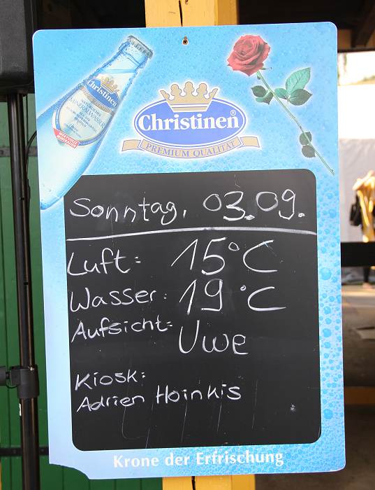 Immerhin war die Wassertemperatur bei 21 Grad Celsius und die Lufttemperatur bei 20 Grad Celsius um 15.00 Uhr, so dass sich doch einige Schwimmer ins Wasser stürzten.