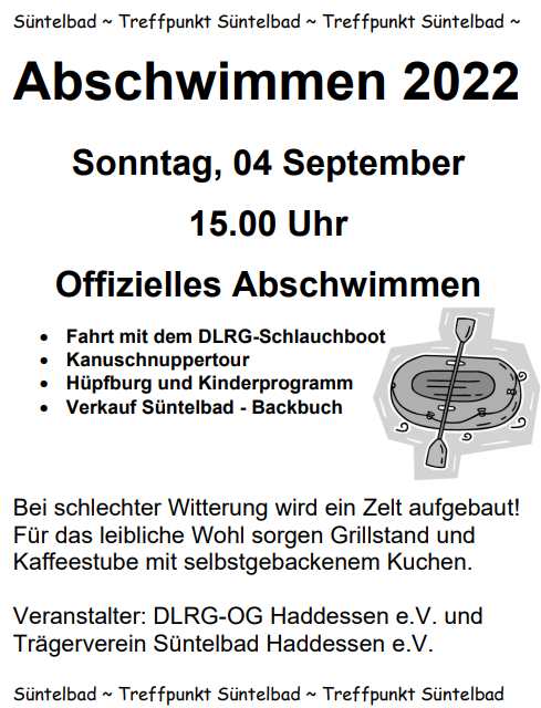Dank geht an alle Helfer und Mitarbeiter, an die vielen Kuchen- und Tortenspender, und an alle Besucher des Abschwimmens die noch einmal ins Süntelbad gekommen waren. Getreu unserm langjährigen Motto: