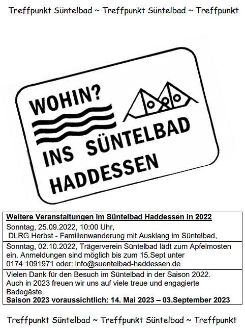 Dank geht an alle Badegäste, vor allem an die Dauergäste, die uns die Treue gehalten haben. Gerne haben wir auch Gäste aus Hameln, der Hessisch-Oldendorfer Kernstadt, Springe und sogar Hannover und Braunschweig begrüßt.