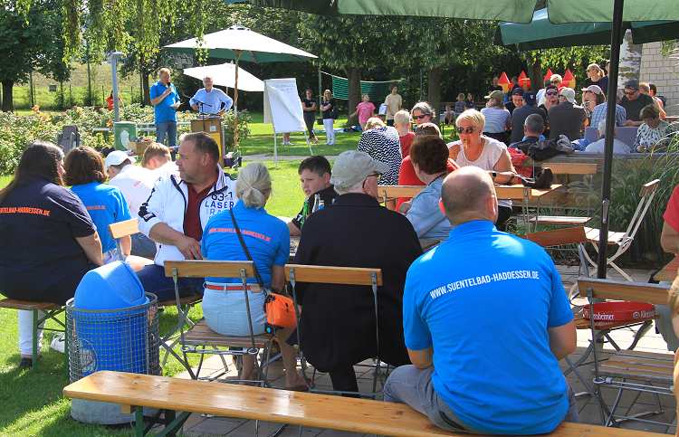 Nach und nach füllte sich das Süntelbad und unter den ca. 200 Gästen konnten wir unter anderem den 1.Vors. vom Trägerverein Süntelbad Haddessen, Henning Kaiser und den eh. 1,Vorsitzenden des Trägervereins, Heinz Beißner mit Gattin, vom Stadtrat und Ortsrat Kirsten Beißner, Ulf Ganser, Fabian Wallbaum und Birgit Schäfer und Stammgäste des Süntelbad Haddessen begrüßen.