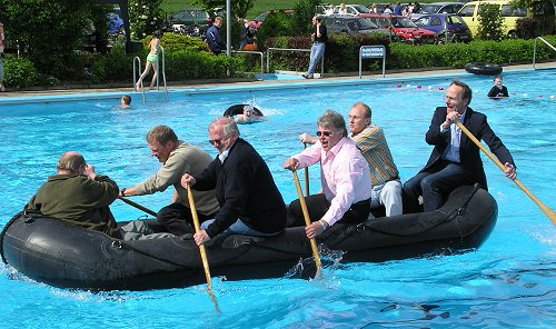 die 'politische Prominenz' galt es, mit Paddel ineiner gemeinsamen Bootsfahrt zu beweisen, dass