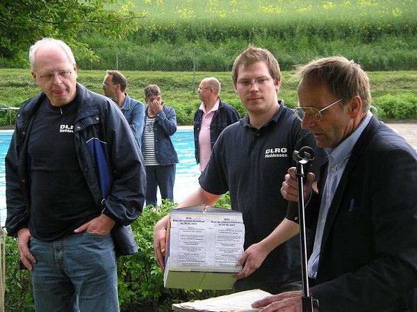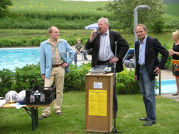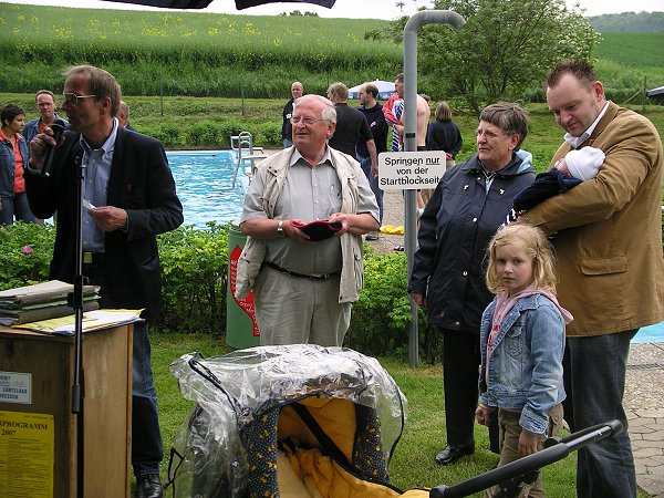 Intensive Diskussionen um die drohende Sperrung der Straße wegen benachbarter Brückensanierung in Texas bereicherten die Stunden im Süntelbad. Unter Beisein des hauptamtlichen Bürgermeisters Herrn Krüger und des Ortsbürgermeister Herrn Beißner, der fleißig Jahreskarten verkaufte, konnte diese Veranstaltung als gelungener Auftakt der Saison 2007 in die Geschichte der DLRG-OG Haddessen eingehen. Aber die Arbeit im Süntelbad geht weiter: Rasen mähen, Hecken jäten, Hecken schneiden, Reparaturen aller Art, Aufsicht führen. Getreu dem Motto: Wohin - Ins Süntelbad Haddessen.
