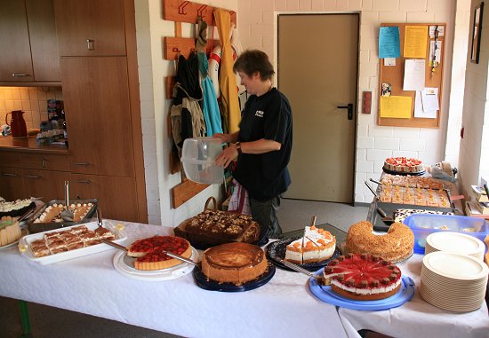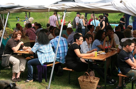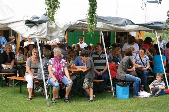 Kaffeestube und Grillstand sorgten für das leibliche Wohl und der kleine Regenschauer, der um 17.00 Uhr niederging, tat der Veranstaltung keinen Abbruch: Das SG-50 Zelt bot über 80 Gästen Schutz vor Witterungsunbill.