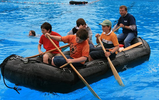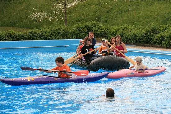 Hüpfburg, Schlauchbootfahren und Kanufahren mit Kanus des Rintelner Kanu Clubs und Tauchen nach Getränkepaketen rundeten das sportive Angebot ab.