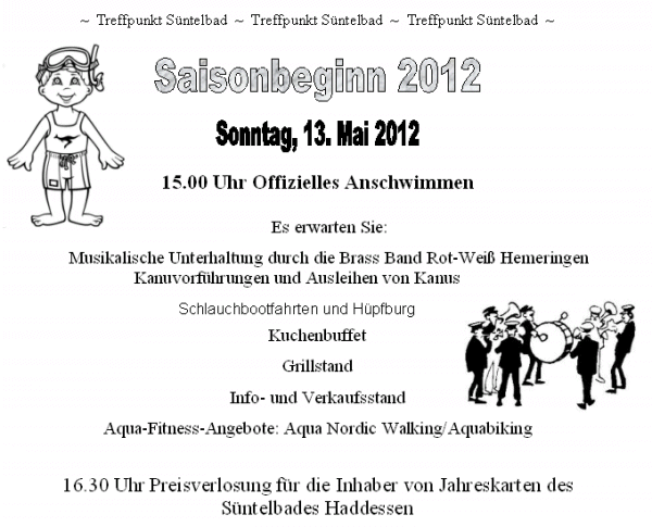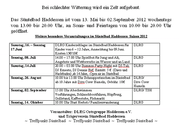 Eine tolle Saison wünschen sich alle Freunde und Förderer und vor allem die DLRG-Mitglieder der DLRG-Ortsgruppe Haddessen und des Trägervereins Süntelbad Haddessen. Es ist die 14.Saison, das diese beiden Vereine das Süntelbad Haddessen erfolgreich betreiben.