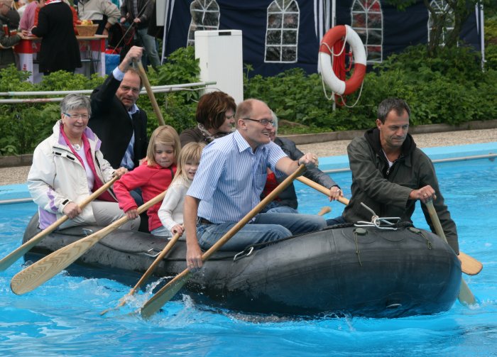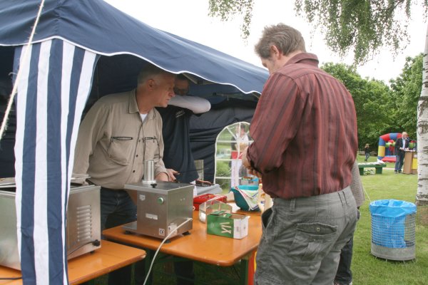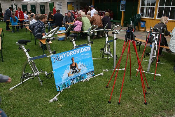 An Land konnten sich die 200 Gäste an Darbietungen der Musikkapelle Brass Band Hemeringen erfreuen. Hüpfburg, Kaffeestube mit selbstgebackenem, gespendetem Kuchen, Grillstand, Jahreskartenverlosung und Gesundheitscheck am Stand einer Krankenkasse sorgten für Angebote und Kurzweil. Reiner Jagata aus Rolfshagen stellte seine Aqua-Fitness-Geräte vor.
