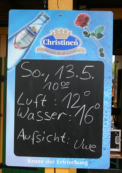 Der Wettergott hatte am 13.Mai ein halbes Einsehen: Es war zumindest trocken von oben, wenn auch mit 16 Grad Lufttemperatur und 16 Grad Wassertemperatur eine sportliche Herausforderung. Immerhin stürzten sich 10 Wagemutige in die Fluten des Süntelbad Haddessen. Alle Achtung, Respekt!