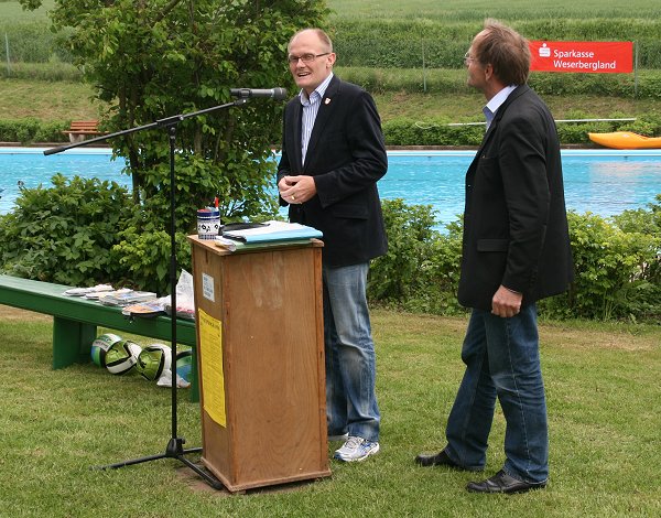 Bereits vor der feierlichen Eröffnung am Nachmittag stattete der Ortsbürgermeister, Herr Koch, einen Besuch ab und fand anerkennende Worte für die geleistete Arbeit und sagte die rückhaltlose politische Unterstützung für das Süntelbad Haddessen zu. Auch der hauptamtliche Bürgermeister der Stadt Hess.-Oldendorf, Herr Krüger, drückte in seinem Grußwort seinen Dank für die gute Arbeit aus und sagte auch weiterhin Unterstützung zu.