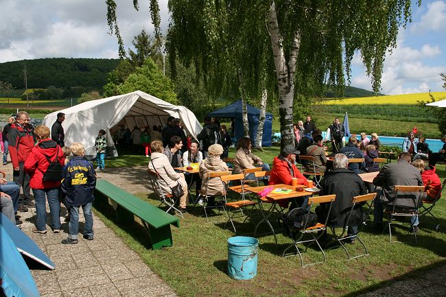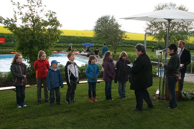 Der Lohn dieser umfangreichen Arbeiten in den letzten Wochen war die termingerechte Eröffnung des Süntelbad. Trotz schlechter Witterungsbedingungen, die mehr dem Monat April als dem Wonnemonat Mai zuzuordnen waren (Sonne, Graupel, Regen, Wind, Lufttemperatur 10 Grad C) kamen die treuen Süntelbadfans und ließen sich das Offizielle Anschwimmen nicht nehmen.
