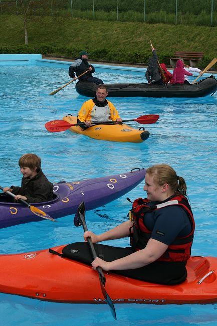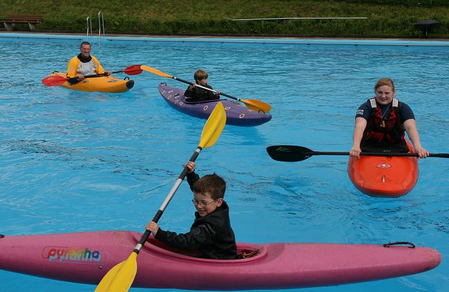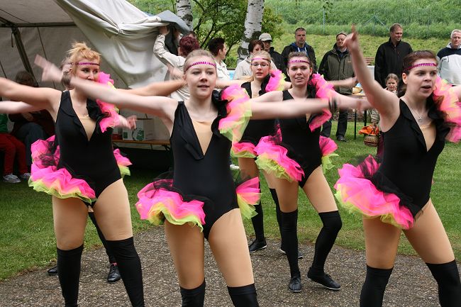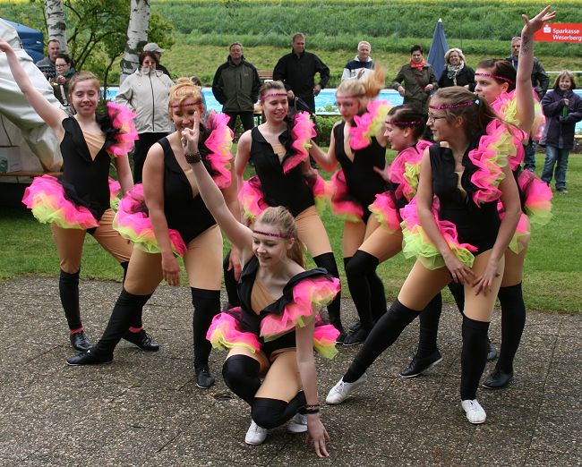 Während sich die Kinder im Wasser (17.Grad C.), auf der Hüpfburg, beim Kanufahren und Schlauchbootfahren vergnügen konnten, zog es die Erwachsenen mehr ins trockene Zelt und in die warme Kaffeestube oder auch zur Tanzvorführung der Gruppe 'Rat Pack' von den 'Rockin� Rats' aus Hameln unter der Leitung von Julia Jahn-Pabel.