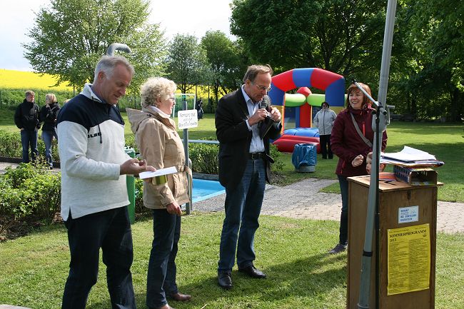 Bleibt zu erwähnen, dass immerhin über 30 Jahreskarten bereits an diesem Eröffnungstag von Heinz Beißner (1.Vors.) und Hans-Heinrich Kardinal (2.Vors. des Trägervereins Süntelbad Haddessen), verkauft werden konnten und das der Bürgermeister der Stadt Hess.-Oldendorf, Herr Krüger, sich positiv zum Süntelbad Haddessen geäußert hat und feststellte, dass der städtische Zuschuss hier gut für Jugend-Kultur-Freizeit und Sportliche Angebote angelegt ist.