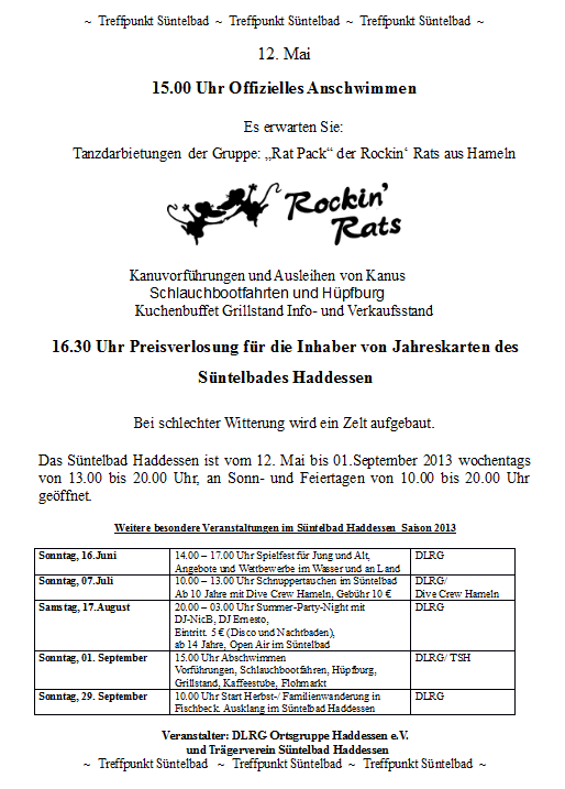 Offizielles Anschwimmen im Süntelbad Haddessen am 12.Mai 2013