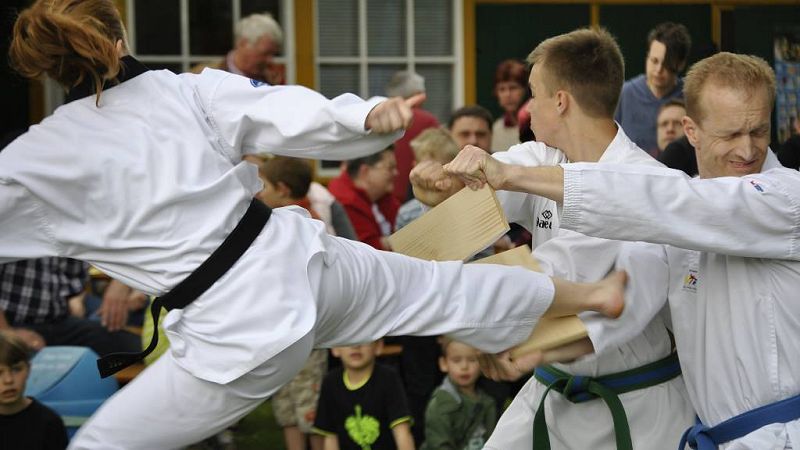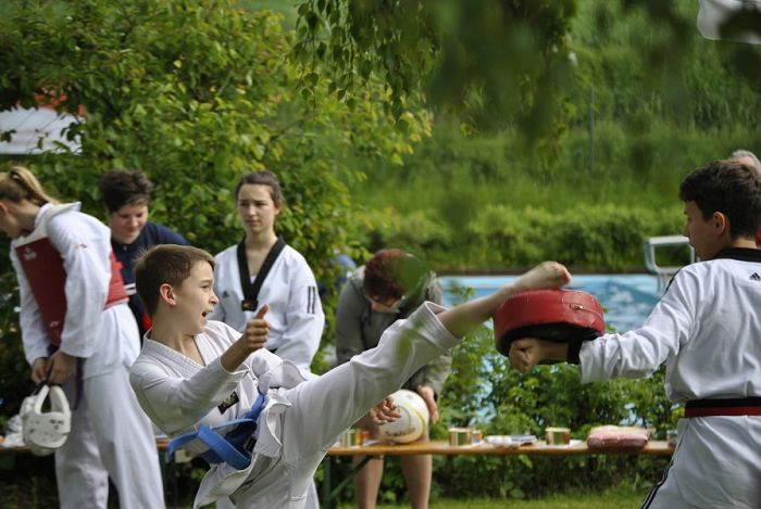Die ersten Badegäste tummelten sich bei der Baderöffnung bereits im Wasser und tauchten nach versenkten Trinkpäckchen, während die meisten Besucher sich aber an den Angeboten erfreuten, wie da waren Hüpfburg, Kanufahren, Schlauchbootfahren, Vorführung der Taekwondo-Vorführung des TC-Hameln, Grillstand, Kaffeestube, DLRG-Losverkauf und natürlich die Verlosung von Preisen unter den Käufern der Saison-Jahreskarten. Diese Preise hatten Firmen gespendet, bei denen ich mich bei dieser Gelegenheit noch einmal recht herzlich bedanken möchte.