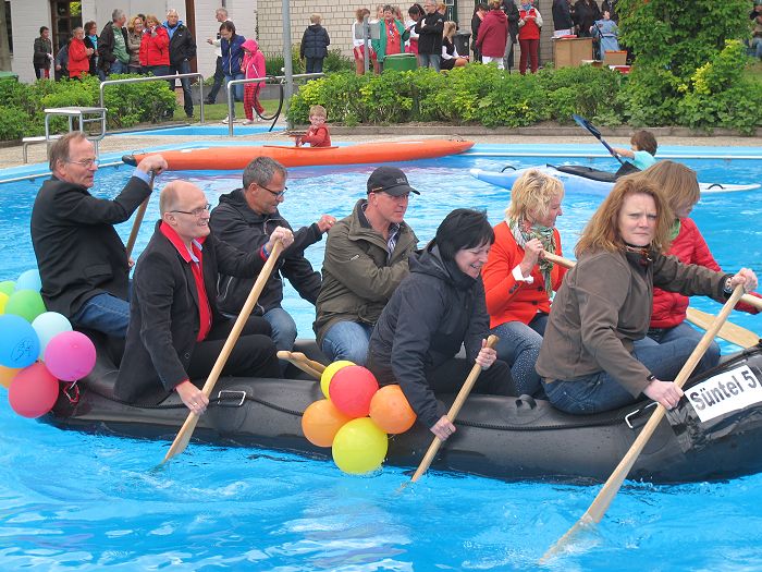 Mitglieder des Stadtrates, des Ortsrates, des DLRG Vorstandes des DLRG-Bezirk Weserbergland und der DLRG-Ortsgruppe Haddessen unternahmen die Jungfernfahrt mit 'Süntel 5' auf dem großen Schwimmbecken und bewiesen so wieder einmal, dass die Zusammenarbeit funktioniert und es gemeinsam vorwärts gehen kann. Aus den Händen Ihrer Trainerin Karin Schäfer erhielten Kinder Ihre Schwimmurkunden. Die Teilnehmer der Rettungsschwimmausbildung erhielten Ihre Urkunden aus den Händen von