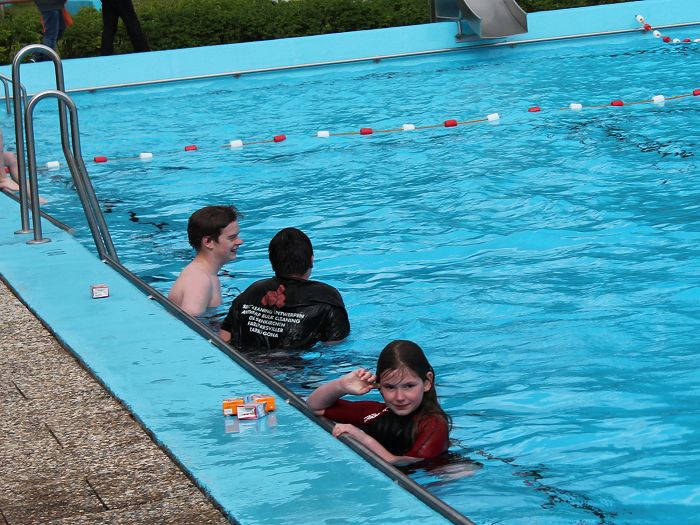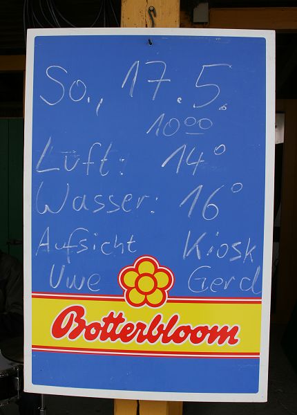 Trotz des kühlen Maiwetters (14 - 18 Grad Lufttemperatur, 16 Grad Wassertemperatur) konnten bereits 45 Jahreskarten beim Anschwimmen verkauft werden.