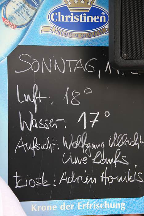 Bei mäßigem Sommerwetter mit 20 Grad C Lufttemperatur im Schatten und 17 Grad C Wassertemperatur konnten bereits über 60 Jahreskarten beim Anschwimmen verkauft werden.