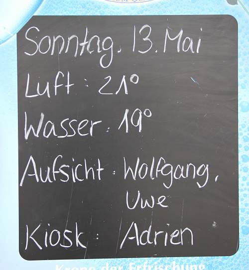 Zeigte das Thermometer vor 8 Wochen noch max. 4 Grad plus am Tag an, so strahlte am Eröffnungstag für die Saison 2018 die Sonne vom strahlendblauen Himmel und erwärmte die Luft auf 25 Grad plus und das Wasser sogar schon auf 20 Grad plus. Welch rasante Entwicklung. Nach dem kalten März folgten im April bereits herrliche Sonnentage und in den letzten beiden Wochen erwärmte sich das Schwimmbeckenwasser allein durch die Sonneneinstrahlung auf 20 Grad plus. Wenn auch die Wettervorhersagen in der letzten Woche oft sehr widersprüchlich waren, je nach Wetter App, so hielt doch das gute Wetter beim Anschwimmen und die Gewitterfront zog westlich vorbei.