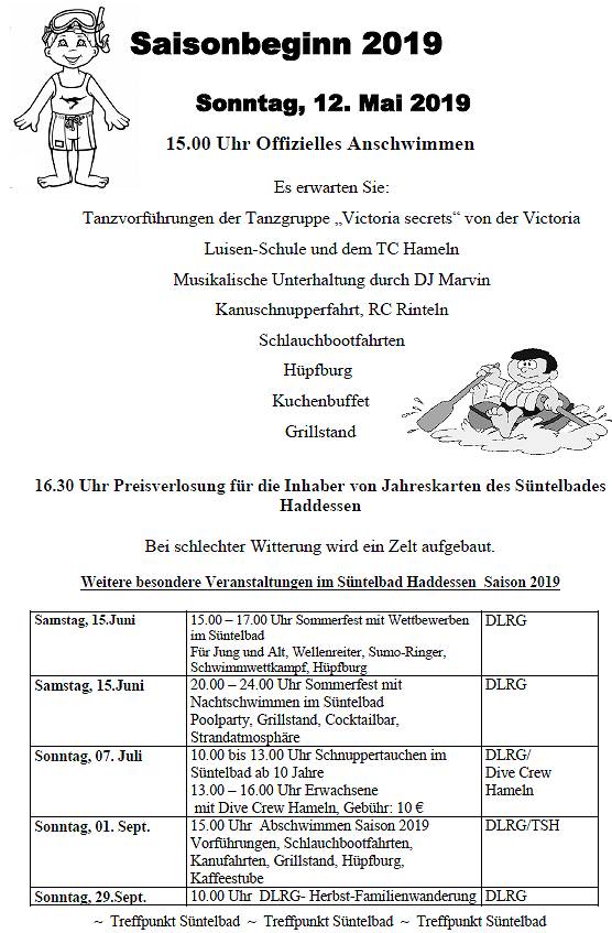 Das Team vom Süntelbad Haddessen freut sich auf eine tolle Saison, viel Sonne, herrliche Badetage und zufriedene Gäste. Wir heißen alle herzlich willkommen.