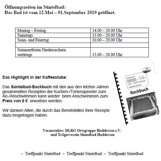 Insgesamt 10 Rettungsschwimmer machen in den 16 Wochen der Saison 2019 Aufsicht im Süntelbad Haddessen. Das Team im Kiosk besteht in dieser Saison aus 4 ehrenamtliche Mitarbeitern die sich um das Wohl der Gäste kümmern.