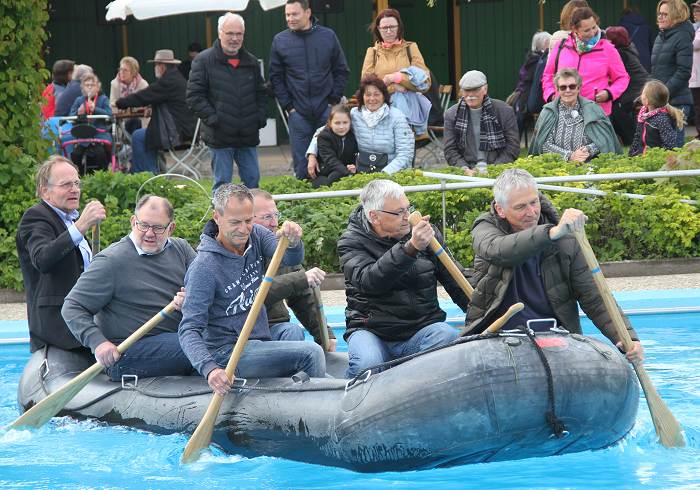 Doch die traditionelle Eröffnungsrunde mit dem DLRG-Schlauchboot drehten der stellvertretende Bürgermeister Marco Guss, der Ortsbürgermeister Friedrich Koch, das Ortratsmitglied Ulf Ganser und die aktiven Schwimmer Bernd Grope und Rainer Schulte zusammen mit Herm Henkel als Steuermann. So muss es sein: Stadtverwaltung, Stadtrat, Ortsrat, Betreiber und Nutzer sitzen sprichwörtlich alle in einem Boot.