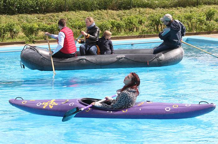 Die Chlorgasanlage wurde wieder, wie jedes Jahr vor Saisonbeginn, von einem Fachmann überprüft. Sicherheit und Gesundheit der Badegäste und Schwimmbadbesucher gehen vor. Wenn sich auch nur wenige in zum Schwimmen ins kühle Wasser trauten, so wurden doch die Angebote auf dem Schwimmbecken mit Kanus oder als Mitpaddler im Schlauchboot mit zufahren, von vielen genutzt.