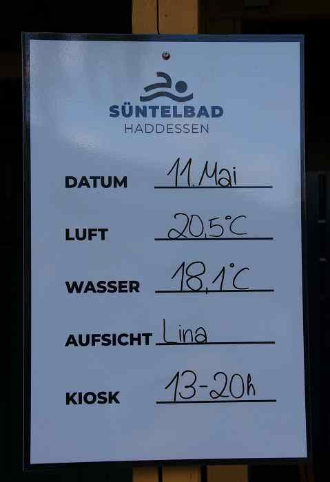 Bei strahlend blauem Himmel konnte am Sonntag, den 11. Mai die Saison 2025 gestartet werden. Bereits bei der Eröffnung um 10.00 Uhr kamen die ersten Badegäste und zogen Ihre Bahnen im 17,5 Grad warmen Wasser. Im Laufe des Tages stieg die Lufttemperatur auf 24 Grad Celsius. Rasch bildeten sich auch lange Schlangen an der extra eingerichteten Eintrittskasse, um eine Jahreskarte zu kaufen. Interessierte konnten auch schon vor dem Saisonbeginn die Jahreskarten online erwerben.