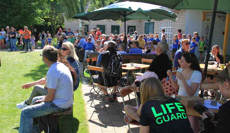 Über 250 Gäste erfreuten sich der zahlreichen Angebote, wie da waren die musikalischen Darbietungen, Grillstand, Kaffeestube, DLRG-Kinderland, Hüpfburg, Kanuschnupperfahrt, Schlauchbootfahrten und natürlich der Kiosk mit seinen mannigfachen Angeboten.