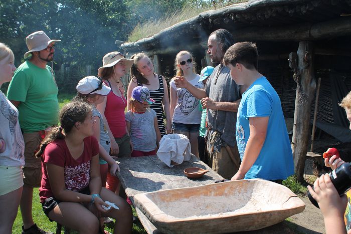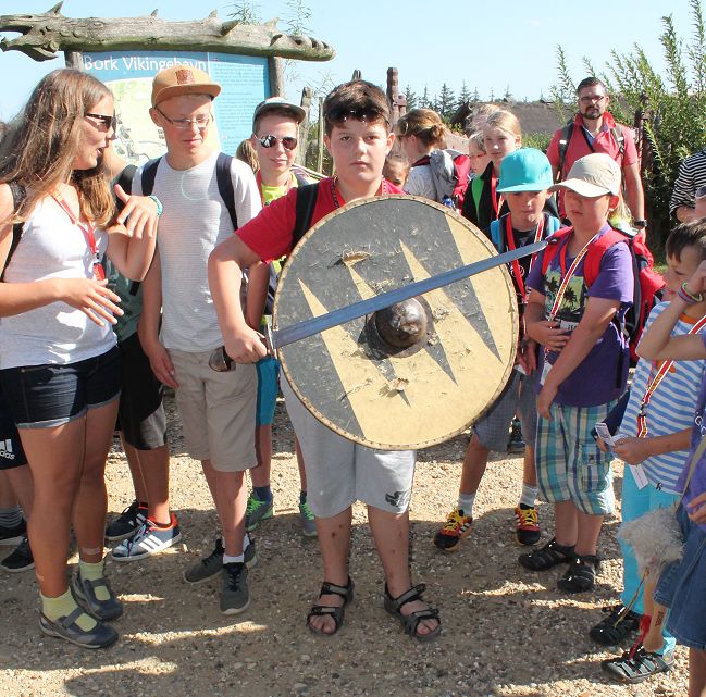 Nach dem Outdoortag stand das Leben der Wikinger auf dem Plan, das in Arbeitsgruppen ergründet wurde. Eine spannende Reise in die Vergangenheit, die durch einen Besuch der Wikingersiedlung Bork Havn noch vertieft wurde. Schon wurden die Wikingerhelme gebastelt und der Wikingertag mit Wikingerolympiade und Bergfest war nicht mehr fern. Vorher noch einen Zeitsprung in die Jetztzeit; Disco am Abend und Brunch am nächsten Vormittag, nachmittags Wanderung von Hvide Sande zum Leuchtturm Lyngvig Fyr. Wieder einmal konnten Steine und Muscheln gesammelt werden und manch einer träumte vom großen Bernsteinfund.