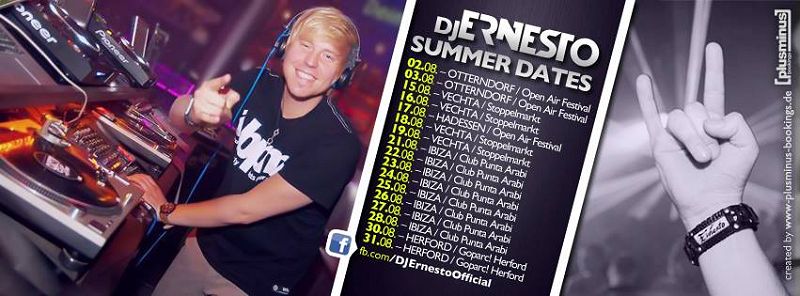 Bereits zum dritten Mal konnte DJ ERNESTO verpflichtet werden, der z. Z. im GoParc in Herford auflegt. Er verspricht auch in diesem Jahr die Menge wieder zum Kochen zu bringen. DJ ERNESTO, der auch auf IBIZA in diversen Clubs zu finden ist, bringt von dort die neusten Party-Trends von der Partyinsel mit nach Haddessen!