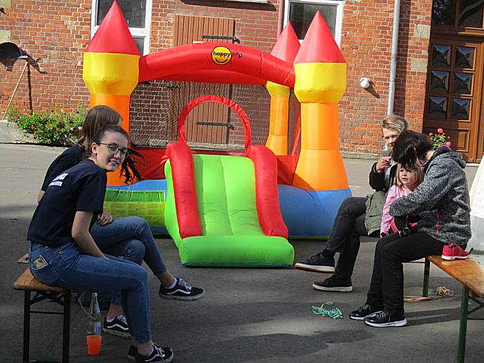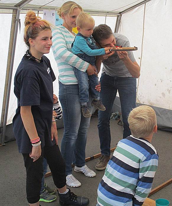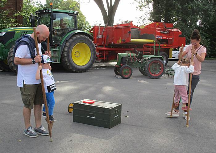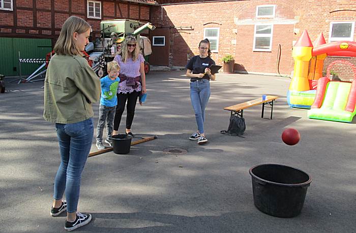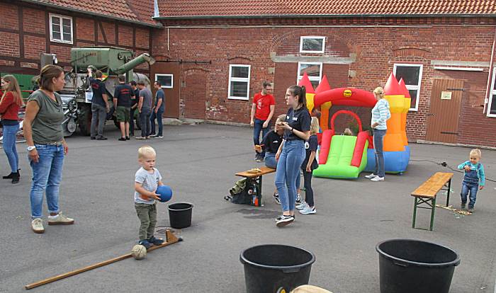 So kamen auch nach der offiziellen Eröffnung des Erntefestes 2019 um 14.30 Uhr durch den Erntebauer Fabian Wallbaum und den Ortsbrandmeister Matthias Klünder auch die Kinder und zum Teil auch Ihre Eltern oder andere Jugendliche und Erwachsene ins Kinderland um sich zu vergnügen, Spaß zu haben oder auch nur, um einfach mal was Neues auszuprobieren und gegenseitig die Kräfte zu messen.