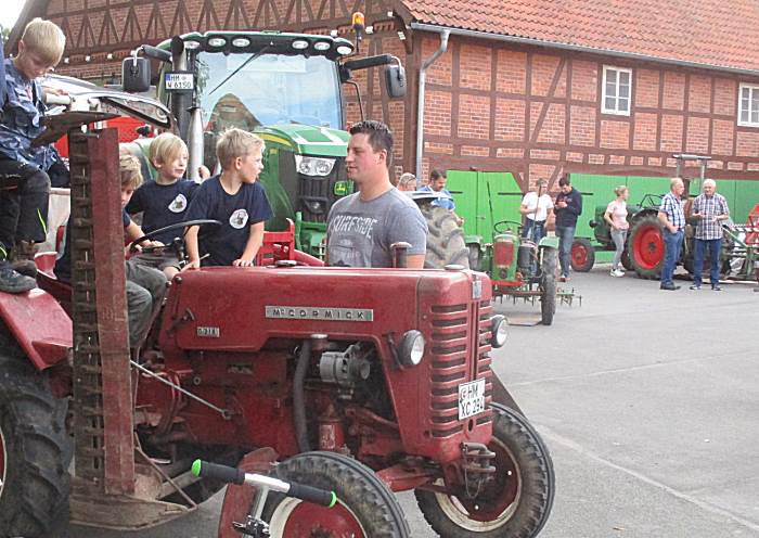 Während des Aufbau füllte sich die andere Hoffläche immer mehr mit alten und modernen Landmaschinen. Dies sollte auch eine echte Attraktion des Erntefestes 2019 werden. Viele Besucher bestaunten die Maschinen und die alten Traktoren waren beliebte Kletterobjekte für die Kinder.