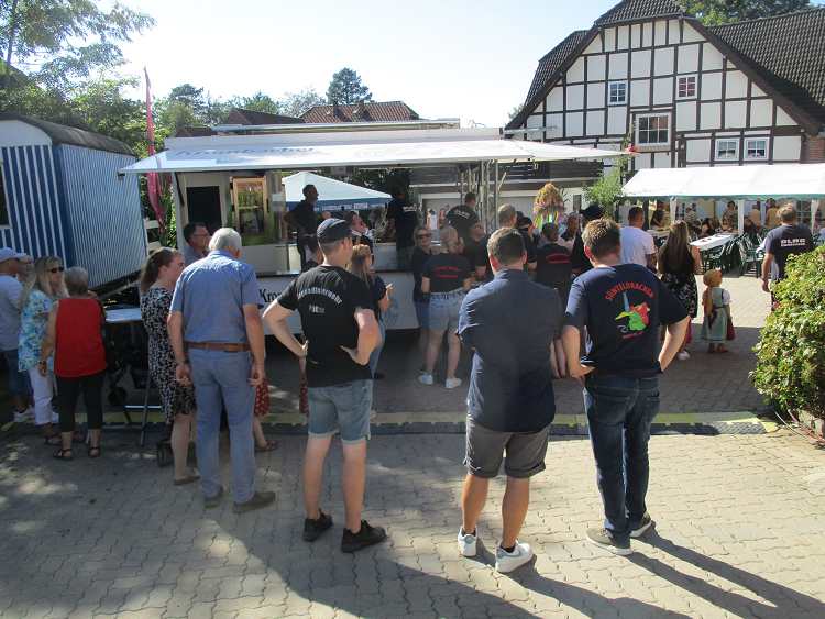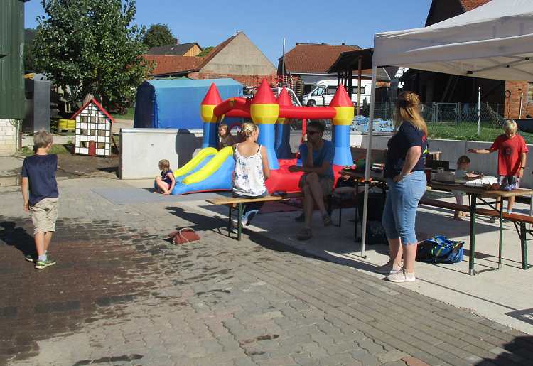 Während Grillstand und Bierwagen umlagert wurden, lockte der Kaffee- und Kuchenstand mit selbstgebackenen Kuchen und Torten ins Festzelt und zu den davor aufgebauten Tischen und Sitzgelegenheiten, während es die Kinder zum Kinderprogramm der Kinder- und Jugendfeuerwehr Haddessen-Pötzen mit Hüpfburg, Puzzle , weiteren Spielen und Kübelspritze zog. Hier gab es für die Kiddis die willkommene Abkühlung bei der sengenden Hitze.