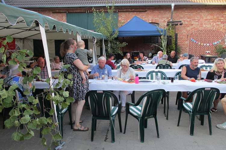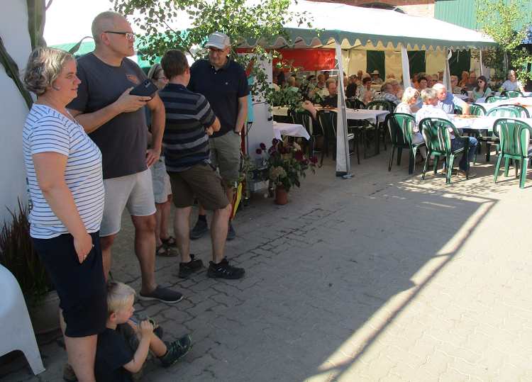 Die Hofatmosphäre lockte vor allem in den Abendstunden viele Besucher und als ab 19.30 die Band „Happy connection“ aufspielte und ab 20.30 Uhr die bunten Scheinwerfer für gemütliche Atmosphäre sorgten, füllte sich die Hoffläche und bei guter Stimmung wurde sogar bis 1.30 Uhr getanzt. Um 2.00 Uhr begann der Abbau und als um 3.00 Uhr der Bierwagen dicht machte, waren noch Gäste auf dem Hof und ließen die Feier noch länger ausklingen.