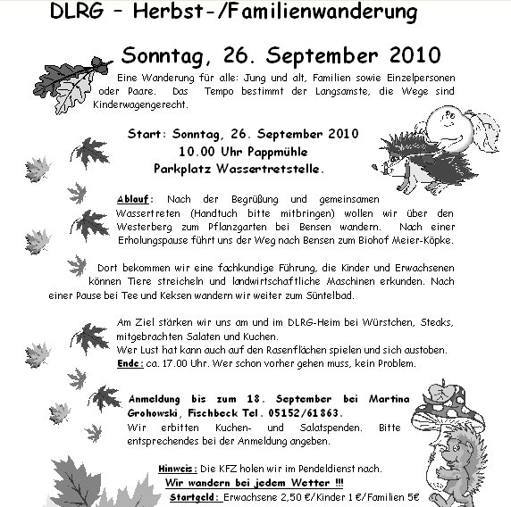 Am Sonntag, den 9.Oktober 2011 startet die nächste DLRG-Herbst-Familien-Wanderung.