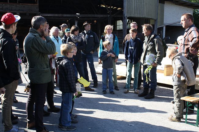 Dort warteten nicht nur Erfrischung und Erholung auf die Wanderer, sondern eine Besichtigung der Firma Holzbau und Dachdeckerbetrieb Weber. Der Firmeninhaber persönlich, Markus Weber und seine Familie begrüßten die Besucher und für die Gäste hatten sie 3 Stationen aufgebaut, die voll begeisterten: