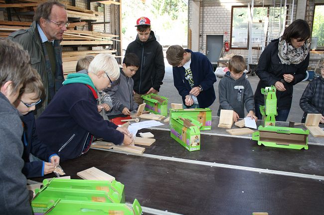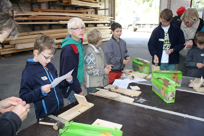Kinder und sogar Erwachsene durften aus einem Fertigbaukasten einen Vogelnistkasten bauen. Geniale Idee.