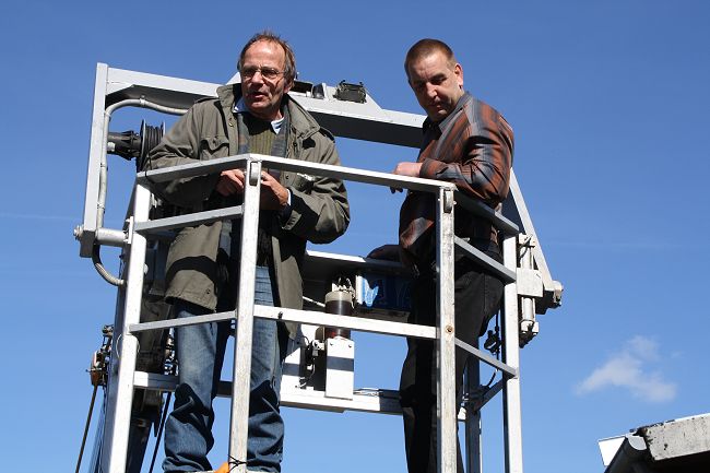 Mit einem Bedienkorb eines Autokrans konnten die Teilnehmer in luftige Höhe gehoben werden