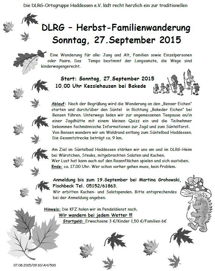 Ein herrlicher Tag endete mit Informationen über die nächsten Veranstaltungen der DLRG-Ortsgruppe Haddessen. Mit Blick auf das nächste Jahr waren sich alle einig: Wir treffen uns spätestens wieder bei der DLRG-Herbst-Familienwanderung am 25.September 2016.