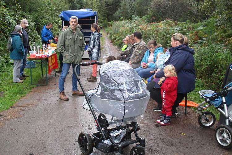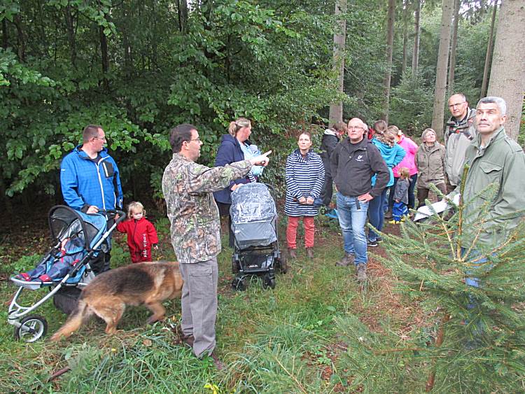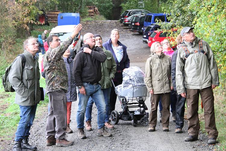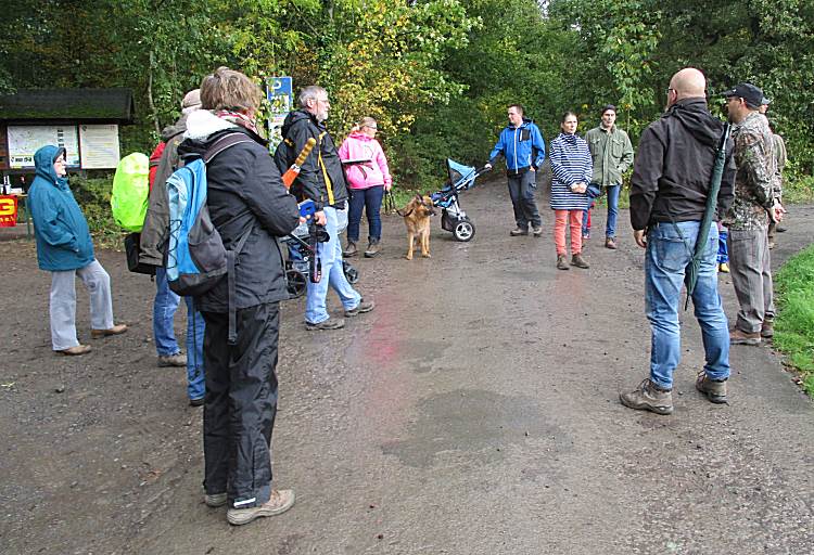 6 Tage nach dem offiziellen Herbstanfanmg sammelten sich 18 Erwachsene und 4 Kinder, teilwiese diese noch im Kinderwagen/ bzw. Kinderkarre und 1 Hund auf dem Wanderparkplatz des Pötzer Kirchweg am Großen Finnenbrg ostwärts von Fischbeck. Nachdem bereits im letzten Jahr die gleiche Tour auf Grund von Sturm und Regen abgesagt werden mußte, wurde nun ein zweiter Versuch unternommen. Bei wolkenverhangenem Himmel und 16 Grad Celsius wagten es die munteren Wanderer, auf den Spuren von Forst und Jagd sich zu begegeben. Nach der traditionellen Begrüßung mit Umtrunk und einer Runde Süßem begrüßte uns der Jagdpächter Jürgen Schöpe aus Fischbeck, der auf alle interessanten Details zum Thema Forst und Jagd einging. Natürlich wurde auch das Thema Baumsterben auf Grund der Trockenheit und des Schädlingsbefallsalls angesprochen und es waren auch deutlich Schäden erkennbar, auf die Jürgen schöpe hinweisen musste.