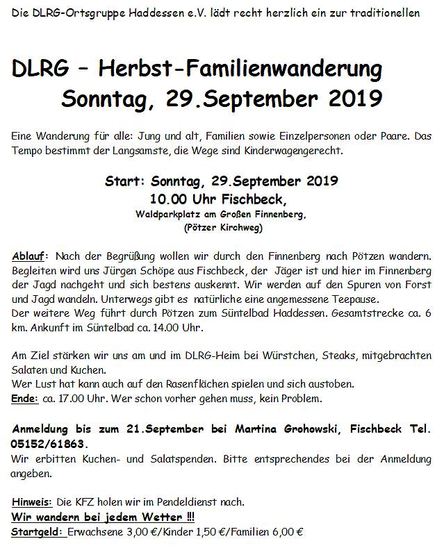 Ein abwechselungsreicher Tag endete mit Informationen über die nächsten Veranstaltungen der DLRG-Ortsgruppe Haddessen. DLRG-Familien mit Blick auf das nächste Jahr waren sich alle einig: Wir treffen uns spätestens wieder bei der DLRG-Herbst-Familienwanderung voraussichtlich am 27.09.2020. Dank an alle aus dem Organisationsteam, insbesondere an Karoline und Jürgen Tyralla und an Martina und Herbert Grohowski und alle Helfer vor und hinter den Kulissen und an Jürgen Schöpe, der uns Forst und Jagd näher gebracht hat.