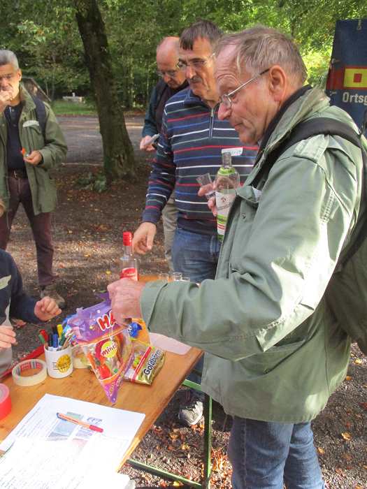 Nach diesem Exkurs in die heimische Wasserwirtschaft und Imkerei ging es entlang des Hohlebachs und am Waldrand des Osterberges zur Sängerbank, einem beliebten traditionellen Treffpunkt Benser Gesangsgruppen. Dort konnten alle Teilnehmenden einen herrlichen Ausblick ins Sünteltal genießen. Der Weg führte weiter zum Falltal nordostwärts von Haddessen, wo Sebastian Schulte inzwischen eine Teeestation aufgebaut hatte. Hier wurden erste Wegaufgaben gezeigt und Schätzaufgaben gelöst. Nach der verdienten Stärkung und Erholung führte der letzte Abschnitt der Wanderung entlang des Hasseln zum Süntelbad Haddessen.