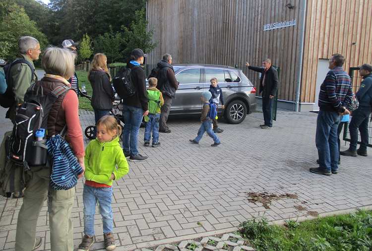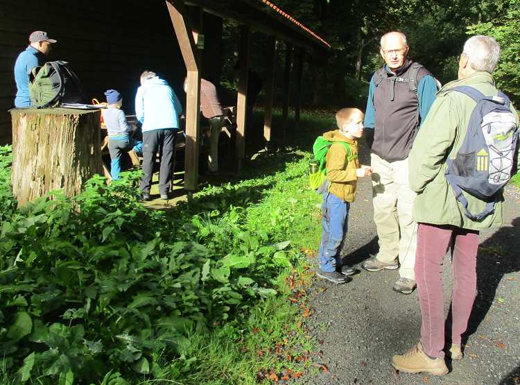 Bei herrlichem Herbstwetter sammelten sich am Sonntag, dem 08. Oktober 2023 10 Erwachsene und 8 Kinder, teilweise diese noch im Kinderwagen, auf dem Waldparkplatz Kreuzsteinquelle in der Nähe der Pappmühle. Gab es noch vor Beginn der Wanderung an diesem Sonntagmorgen leichten Regen, so lachte beim Start um 10.00 Uhr den Teilnehmern ganz überraschenderweise die Sonne ins Gesicht. Und das tolle Wetter sollte so den ganzen Tag über bleiben. Nach der traditionellen Begrüßung mit Umtrunk und einer Runde Süßem ging es über den Westerberg mit kleinem Zwischenstop am Pflanzgarten zur ersten Station dieser Sonntagswanderung: Dem neuen Wasserbochbehälter des Wasserbeschaffungsverbandes Süntel. Hier kann das Wasser aus dem Süntel in 2 riesigen Tanks von je 400 Kubikmeter gespeichert und bei Bedarf ins Wassernetz abgegeben werden. Der 1. Vors. des Wasserbeschaffungsverbandes Süntel, Herr Norbert Beine ,lies keine Frage unbeantwortet und konnte mit Recht stolz auf das neue Bauwerk eingehen.