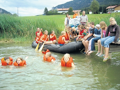 Fahrten mit dem Schlauchboot und das Planschen im Wasser machten den Kindern Spaß.