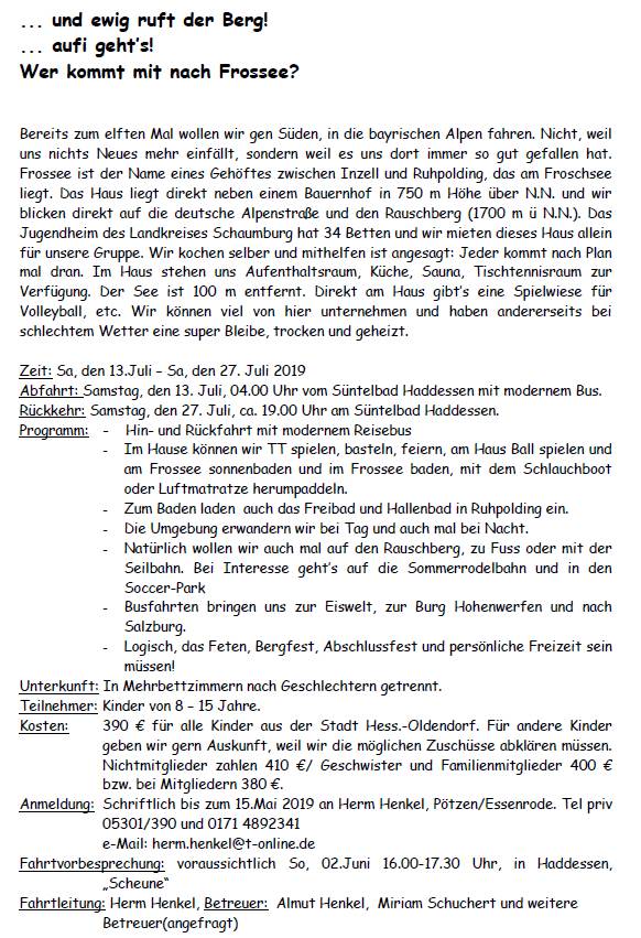 Am Sonntag, den 02.Juni 2019 findet für alle Teilnehmer eine verbindliche Fahrtbesprechung statt. Ort: 'Scheune', Haddessen, Zeit: 16.00-17.30 Uhr