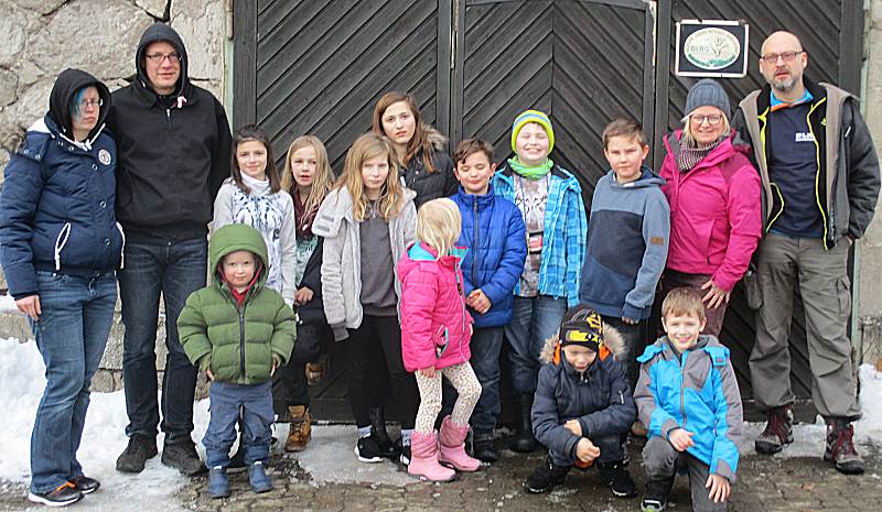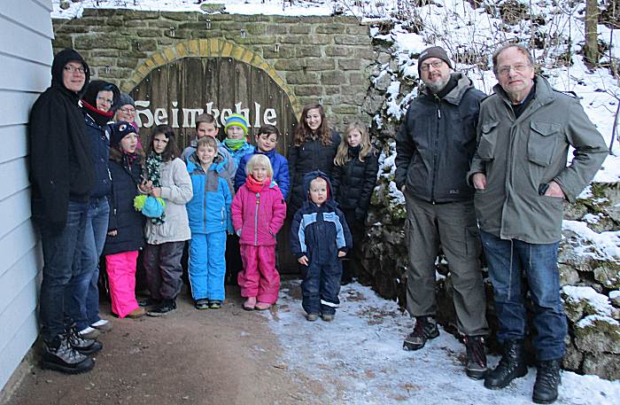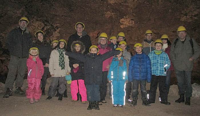 Nach dem Beziehen des Quartiers im ehemaligen Gefängnis, jetzt hergerichtet zu einem sehr schönen DLRG-Heim, holte jeder sein Vesperbrot heraus und gestärkt mit heißen Tee aus Kirsten und Jens Küche starteten wir zum ersten großen Exkursionsziel: Der Weg am Harz-Südrand führte uns an Nordhausen vorbei bis zur 'Heimkehle' bei Uftrungen, eine der größten deutschen Karsthöhlen. Die Höhle hat eine Gesamtlänge von 2000 Metern und konnte ab 1920 besichtigt werden. Im 2.Welkrieg wurden hier von März 1944 bis 4.April 1945 von 1500 KZ-Häftlingen unter härtesten Bedingungen Rüstungsteile für das Jagdflugzeug JU 88 produziert. !954 wurde die Höhle wieder eröffnet. Wir konnten auf dem derzeit begehbaren Teil der Höhle auf 600 m Länge den großen Dom bewundern, einen 80 Meter tiefen Höhlensee bestaunen und zum Abschluss zog uns noch eine Laser/Lichtshow im 'Großen Dom' in ihren Bann.